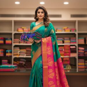KANJIVARAM JACQUARD 3 INCH & JACQUARD BORDER SOFT SILK SAREES
